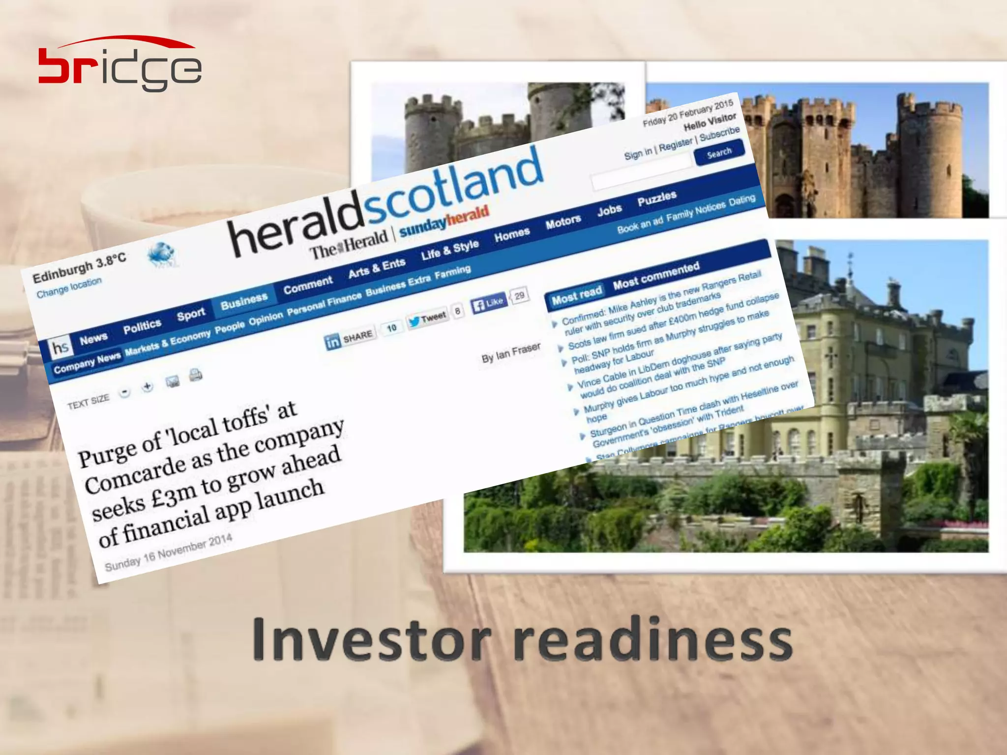 Bridge provides a mobile payment solution that allows merchants to accept credit card payments through their phones, offering lower fees than traditional processors. A survey found that most merchants want mobile payment options, do not like credit card fees, and wish processing was faster to access cash after sales. Bridge has launched a proof of concept with a leading bank and raised $1.25 million in seed funding to develop the platform further with their experienced team.