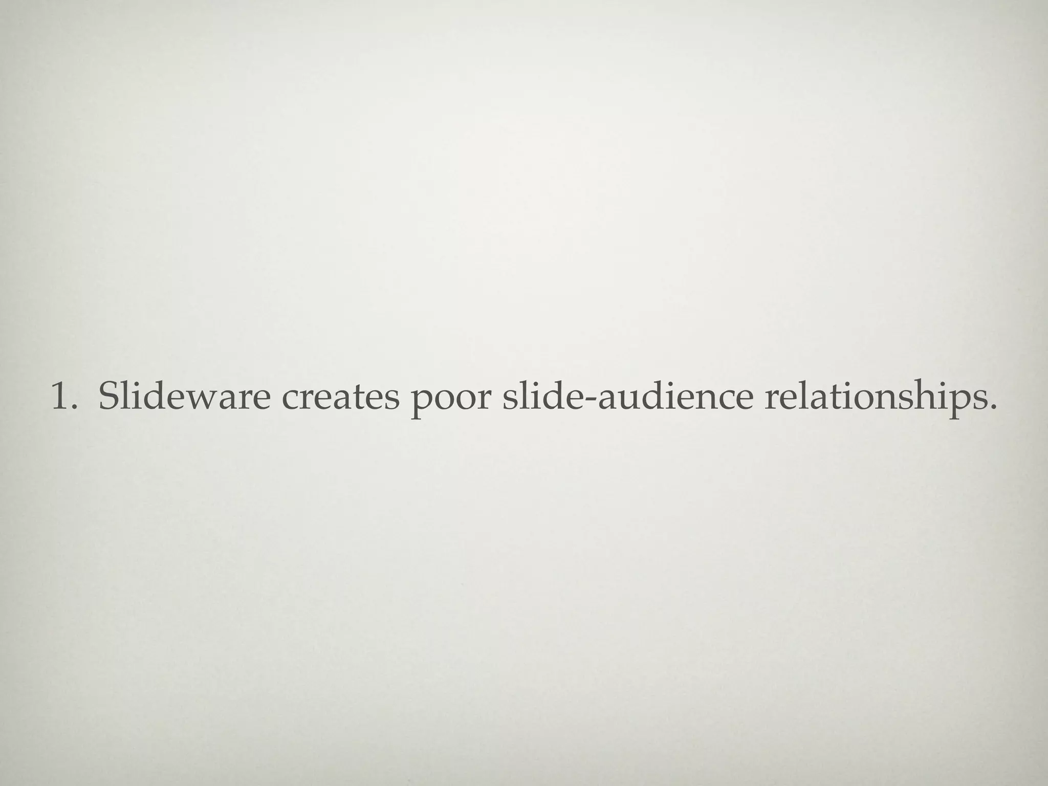 The document discusses the effectiveness of slideware in presentations, highlighting that traditional bullet points hinder communication and engagement with audiences. It suggests that visual storytelling tools, like photos, can convey messages more effectively than text-heavy slides. The author emphasizes the potential of slideware as a teaching tool if used creatively and in alignment with concepts of visual arts and media.