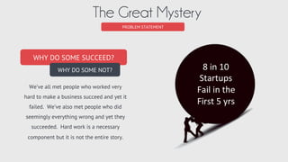 This document outlines criteria for evaluating startup ideas across six categories: customers, product, competition, timing, finances, and team. For each category, key attributes are identified that contribute to a strong score. A startup should address an unmet customer need, have a product that solves that need with low adoption barriers, enter an inefficient market with opportunity for differentiation, time entry for maximum market potential with no commoditization, require low capital and have working capital flexibility, and involve a team with subject matter expertise and skills to deliver. The document provides a framework for scoring ideas across these categories to conduct a well-rounded evaluation and identify areas needing improvement.