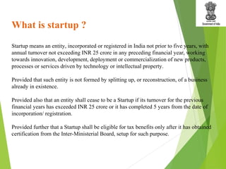 The document provides information about the launch of the Startup India initiative by Prime Minister Narendra Modi. Some key points: