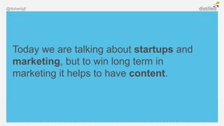 The document discusses the importance of quality content in startup marketing, emphasizing that many startups treat content as an afterthought rather than creating truly useful content. Successful examples like Dollar Shave Club and WePay are contrasted with failures from other startups that overlook effective content strategies. It outlines steps for creating impactful content, including understanding the audience and consistent content production, and highlights the significance of outreach for link-building.