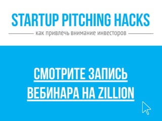 Вебинар по привлечению инвесторов с участием Александра Яныхбаша и Марка Хлынова охватывает ключевые элементы успешной презентации стартапа, включая структуру, дизайн и подачу. Основные темы включают выявление проблемы, предложение решения, бизнес-модель, анализ рынка и конкурентоспособность. Участникам предлагаются советы по подготовке презентации и зрительскому контакту.