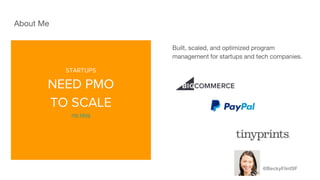 This document discusses program management for startups and scaling companies. It provides an overview of how program management can help with strategic planning, portfolio management, and project execution. It then describes the specific processes and tools used by the author to implement program management, including standardizing a product development lifecycle, configuring tools like Jira and Confluence, and implementing cadences and artifacts to track progress and resources.