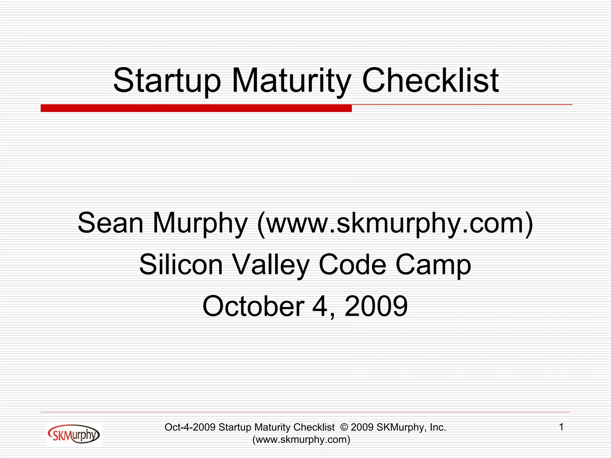 The document presents a startup maturity checklist aimed at guiding software startups through various stages, from idea and team formation to scaling up and achieving a sustainable business. It outlines key activities, challenges, and questions founders should consider at each stage, including customer acquisition, niche development, and financial management. The checklist emphasizes the importance of teamwork, product and customer development, and establishing effective business operations for long-term success.