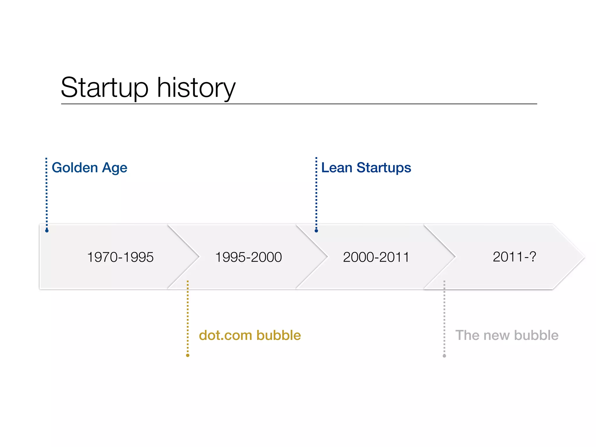 The document summarizes the evolution of startup tools and methodologies over time. It describes four main eras: the Golden Age from 1970-1995 where startups required millions to start and had long development cycles; the dot-com bubble of 1995-2000 where the goal was to quickly flip businesses; Lean Startups from 2001-2010 where startups could launch with under $500k and use agile development and customer feedback; and the current era from 2010-present where businesses aim to rapidly acquire millions of customers and pursue acquisitions or IPOs. The document also outlines Lean Startup principles like the build-measure-learn loop and minimum viable products which aim to minimize time to validated learning about customers.