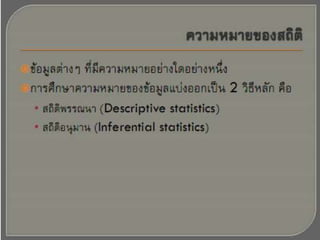 ความรู้เบื้องต้นเกี่ยวกับระเบียบวิธีทางสถิติ