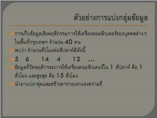สถิติ ม.6 เรื่องการวิเคราะห์ข้อมูลเบื้องต้น PPTX