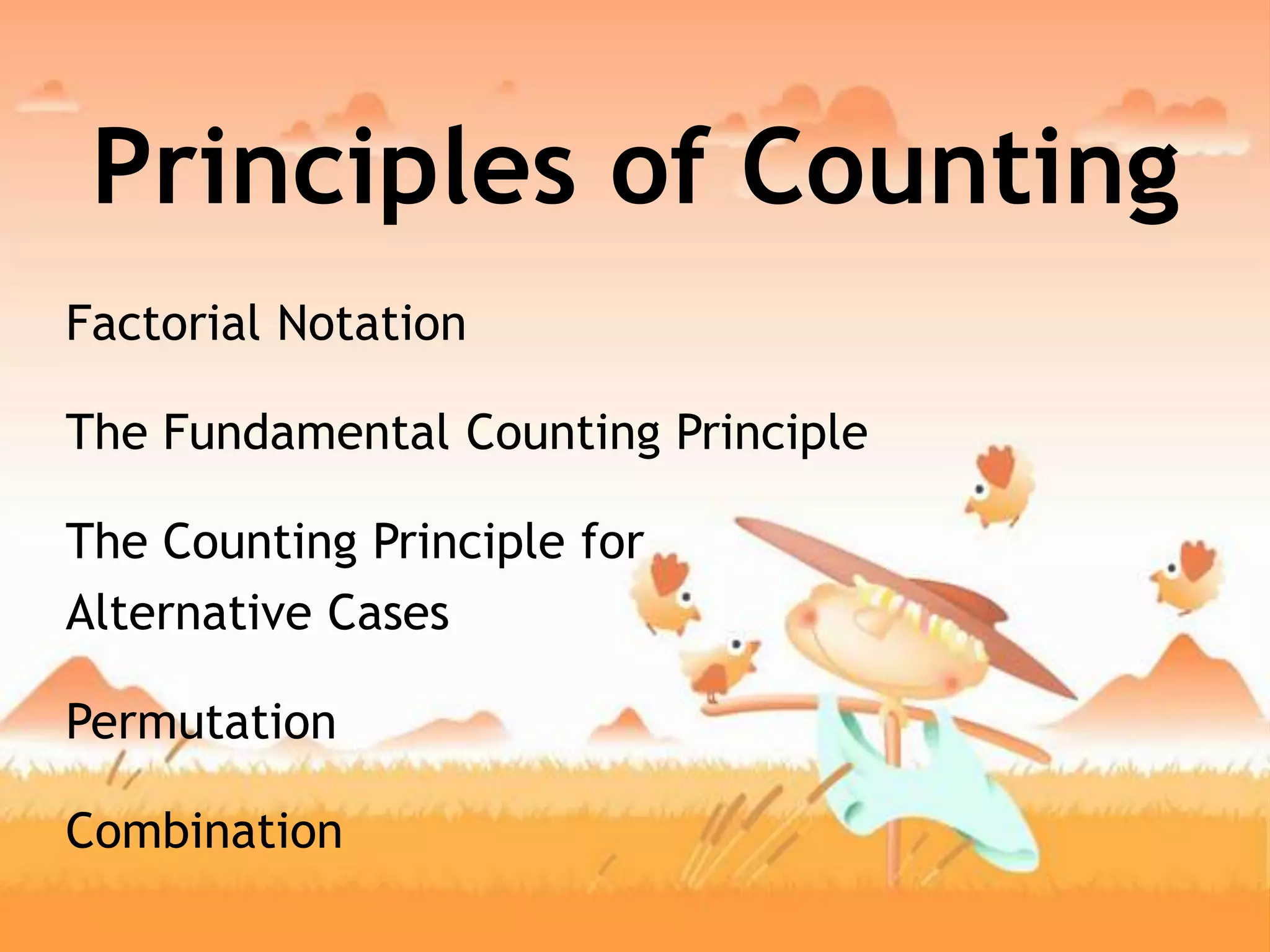This document discusses principles of counting including factorial notation, the fundamental counting principle, permutations, and combinations. Factorial notation (n!) represents the product of all positive integers less than or equal to n. The fundamental counting principle states that if an activity can be completed in n1 ways and another in n2 ways, they can be completed together in n1*n2 ways. Permutations refer to arrangements of objects that consider order, while combinations only consider groupings without order. Formulas to calculate permutations and combinations are provided along with examples of problems applying these principles.
