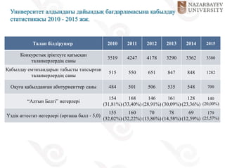 Оқуға қабылданған абитуриенттер саны 484 501 506 535 548 700
