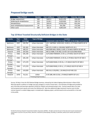 The document summarizes bridge data from Maryland's 2013 National Bridge Inventory. Some key points: