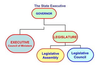 1. The Governor is the constitutional head of the state and acts on the aid and advice of the Council of Ministers. However, the Chief Minister is the real executive authority.