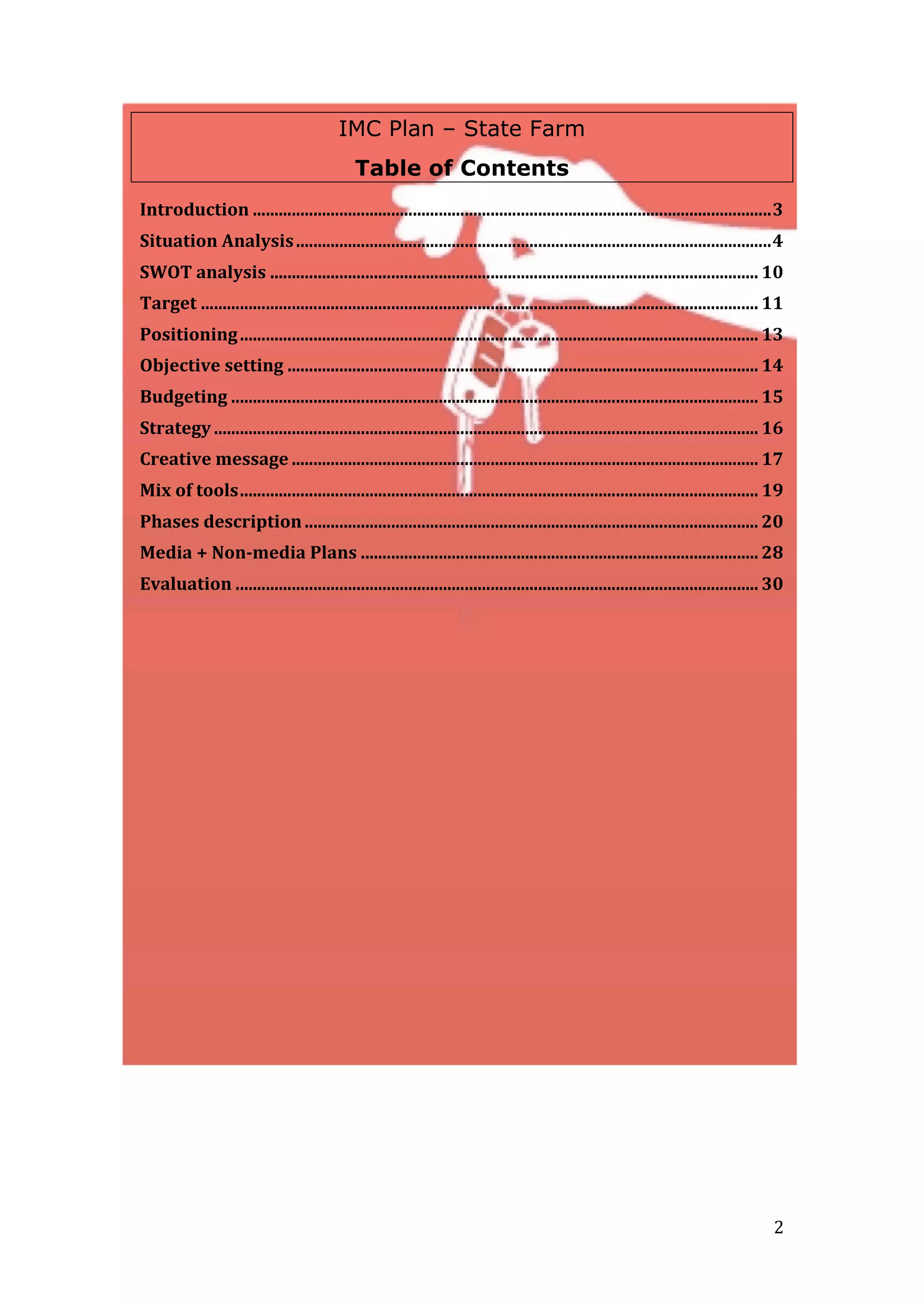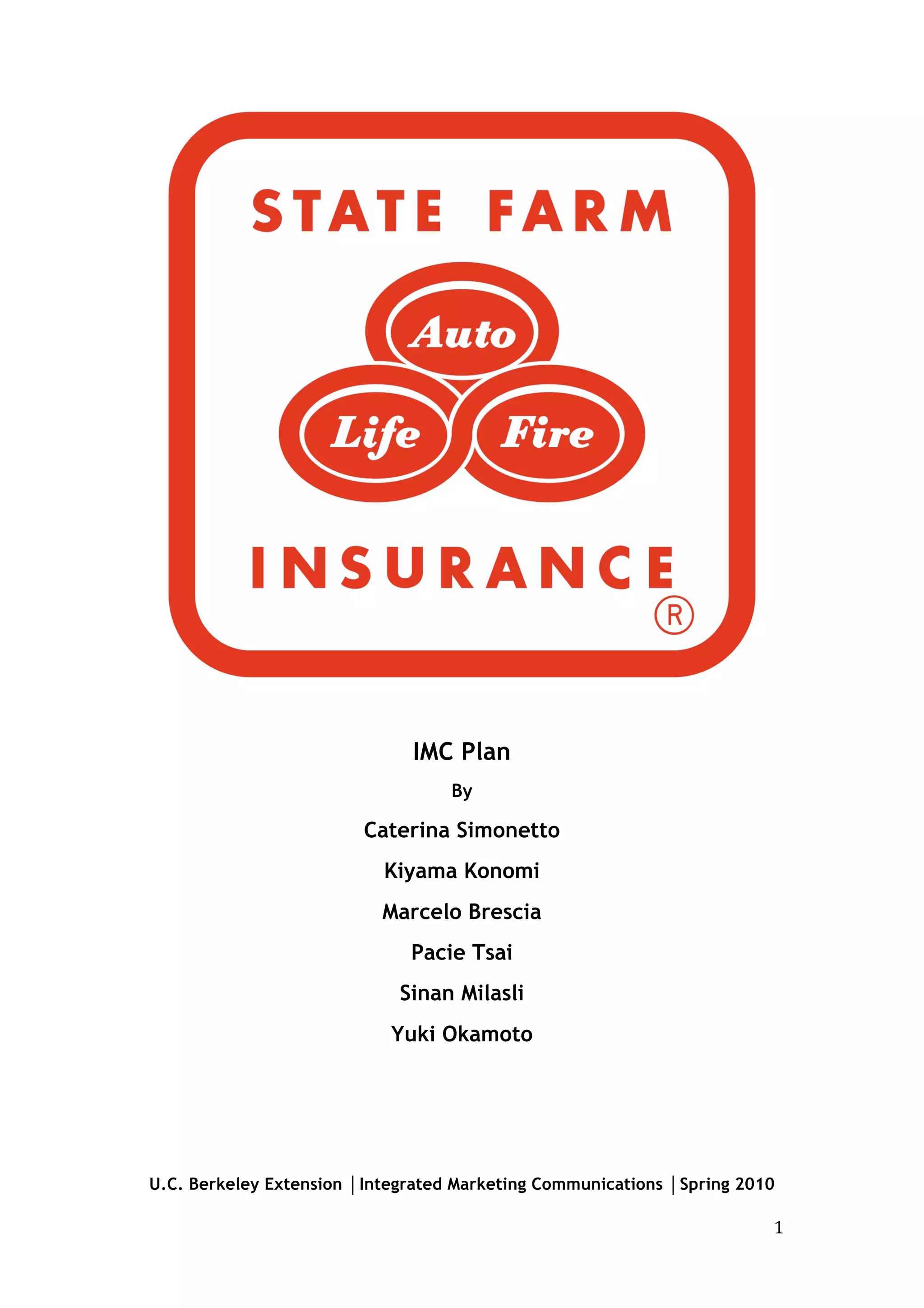 This document provides an analysis of the situation for State Farm's auto insurance business. It examines the economic environment, noting opportunities to compete on price and develop tools to help consumers compare rates. The competitive environment is also assessed, with State Farm's main competitors being Geico, Progressive, and Allstate. These companies spend heavily on advertising, especially television commercials, with Geico typically perceived as the biggest spender. The analysis provides context for developing an integrated marketing communications plan to help State Farm maintain its leadership position.