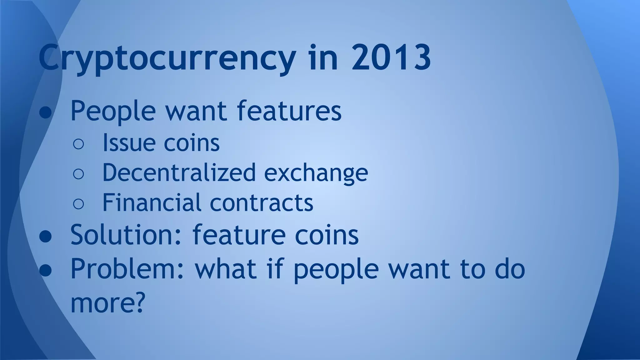 This document summarizes the state of Ethereum and cryptocurrency mining in 2014. It discusses features enabled by Ethereum like decentralized applications and smart contracts. It outlines progress made in technical areas like client implementations and applications built on Ethereum. It also discusses challenges remaining around efficiency, security, and client implementations. The document concludes that Ethereum is at the halfway point and more work is needed to address remaining issues.