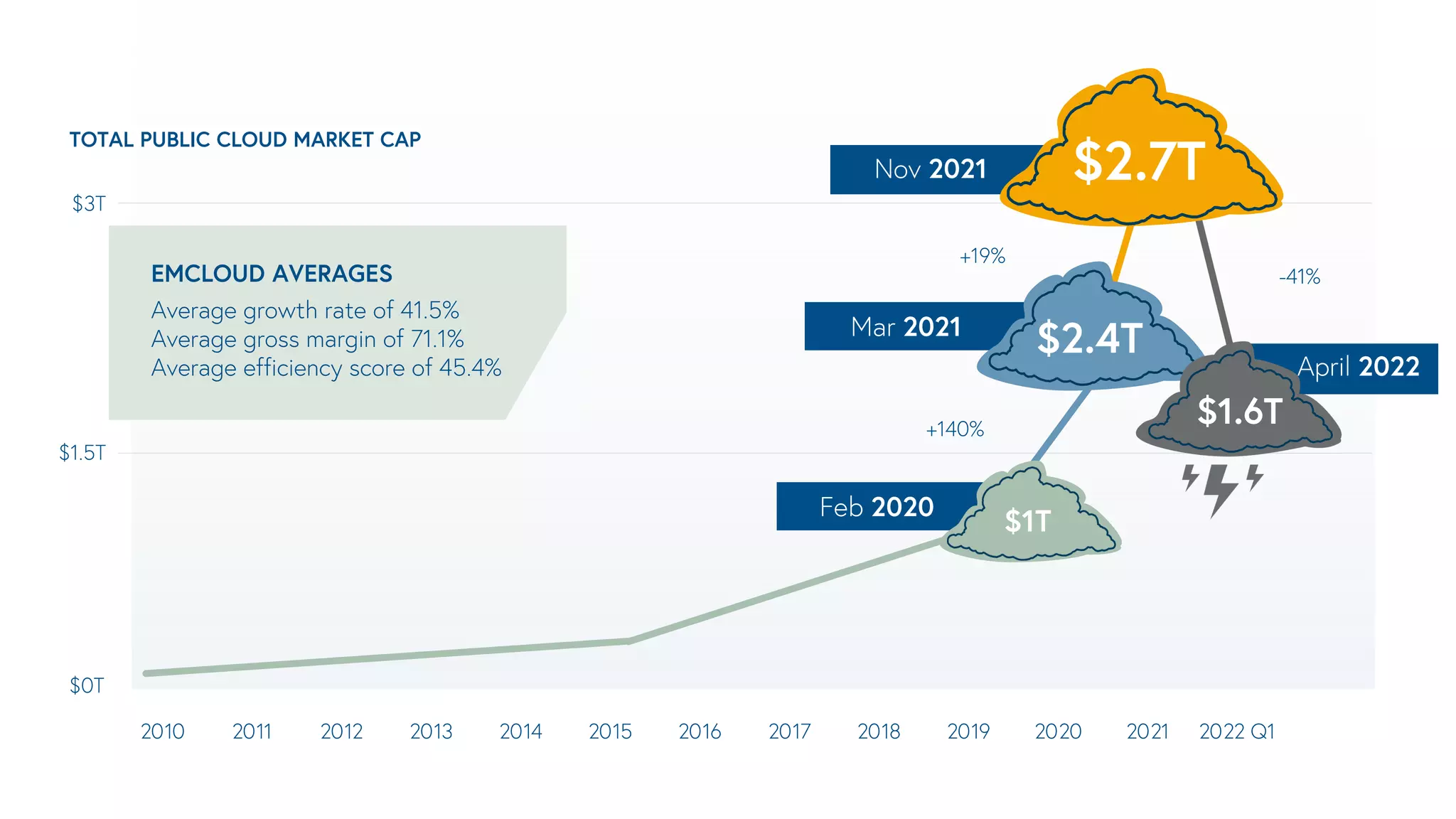 The 2022 State of the Cloud report highlights significant trends in the public cloud market, noting a record $142.4 billion in U.S. IPO proceeds in 2021, while M&A activity reached $1.24 trillion. Despite a slowdown in venture capital funding in 2022, the report emphasizes the continued strength of SaaS models and forecasts increased cloud adoption across various industries. It predicts a rise in cloud marketplace procurement by 2024, with 80% of top cloud companies actively selling through these platforms.