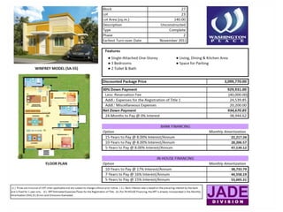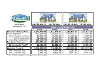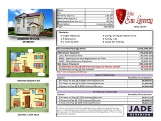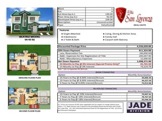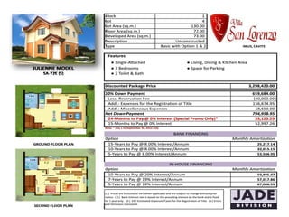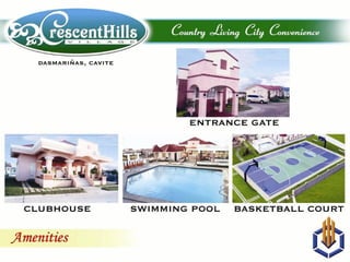 The document outlines the specifications and features of a residential subdivision located in Cavite, which offers various housing models ranging from single-attached to single-detached homes. It includes information on amenities such as swimming pools, playgrounds, and a clubhouse, along with details on zoning plans and accessibility features. Additionally, the document provides floor plans and dimensions for each house model, catering to families with varying needs.