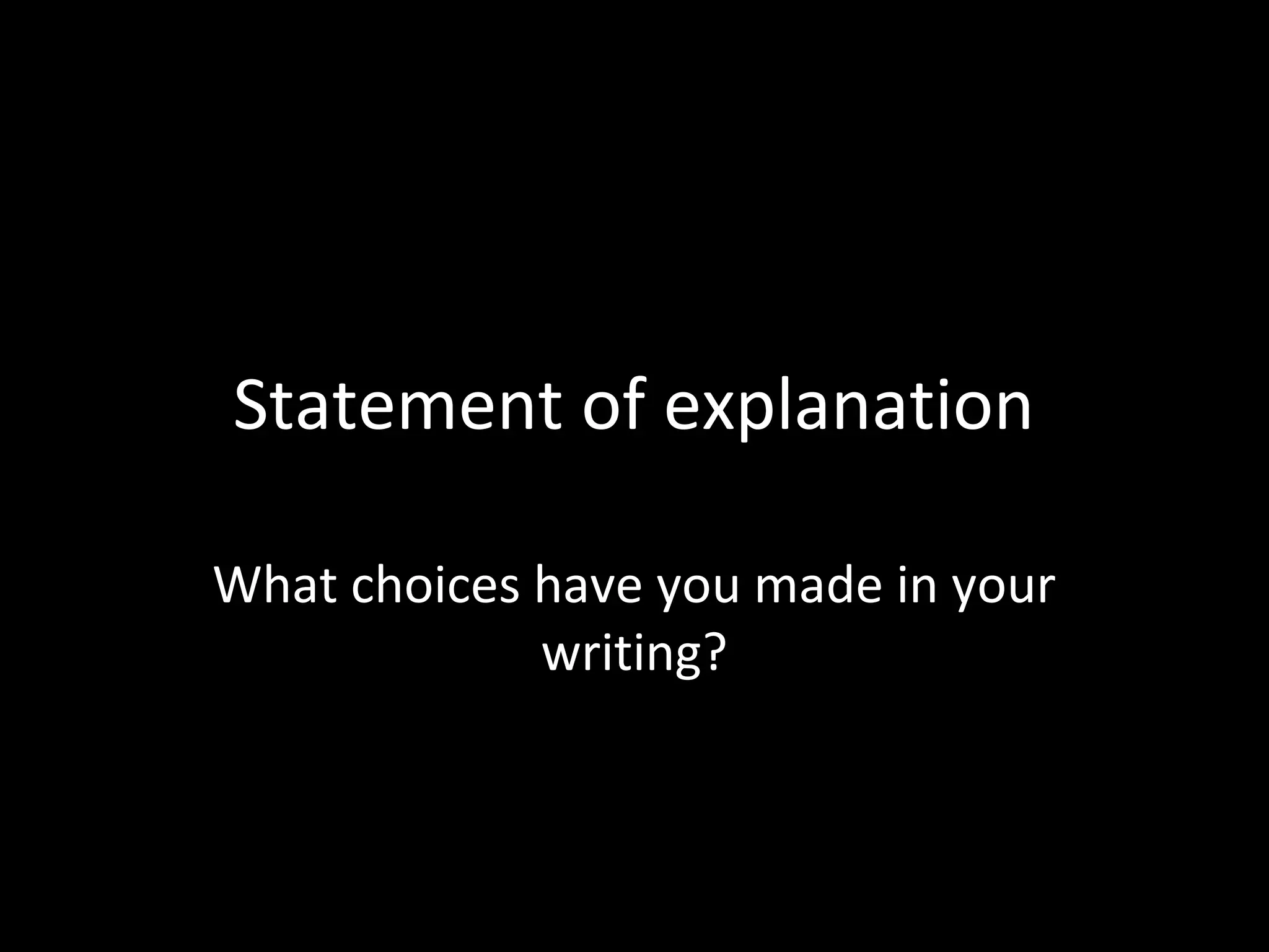 This document provides questions for students to answer in a statement of explanation (SOE) about a written piece. It asks students to reflect on choices made regarding writing structure and style, intended audience, themes addressed in relation to prompts, use of source material, and language techniques used to achieve their goals. Students are reminded to be concise and address a few questions from each section rather than trying to answer every question posed.