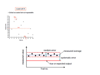 Static characteristics describe an instrument's performance when measuring quantities that remain constant or vary slowly. They include properties like linearity, sensitivity, resolution, repeatability, hysteresis, and environmental effects. Dynamic characteristics describe how the instrument responds when the measured quantity varies rapidly over time. Instruments can be modeled as a series of blocks, each with their own static and dynamic transfer functions. The overall static and dynamic responses are obtained by multiplying the individual block transfer functions. Characterizing both the static and dynamic behavior is important for understanding an instrument's performance.