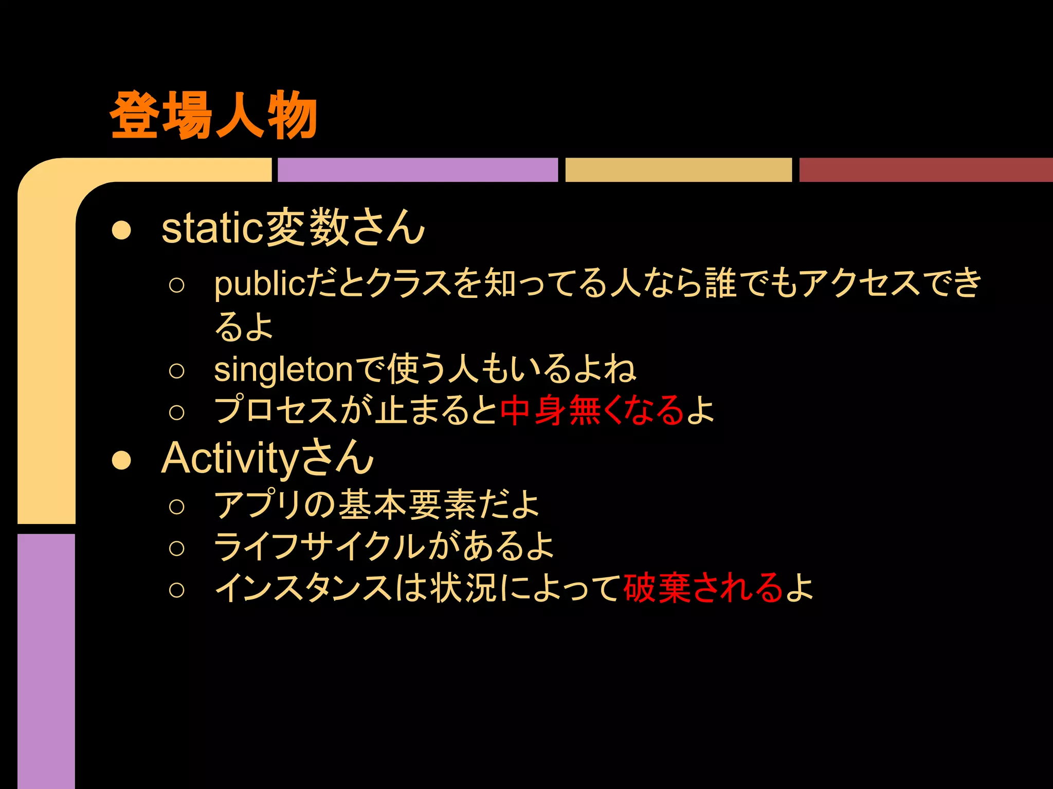 Androidでstatic変数を使っていて、「あれ、いつの間にか値がnullになっている?」みたいなのに遭遇したこと、ありませんか? このスライドでは、そのような状況がどんな仕組みで発生するかと、開発時の再現方法を紹介します。