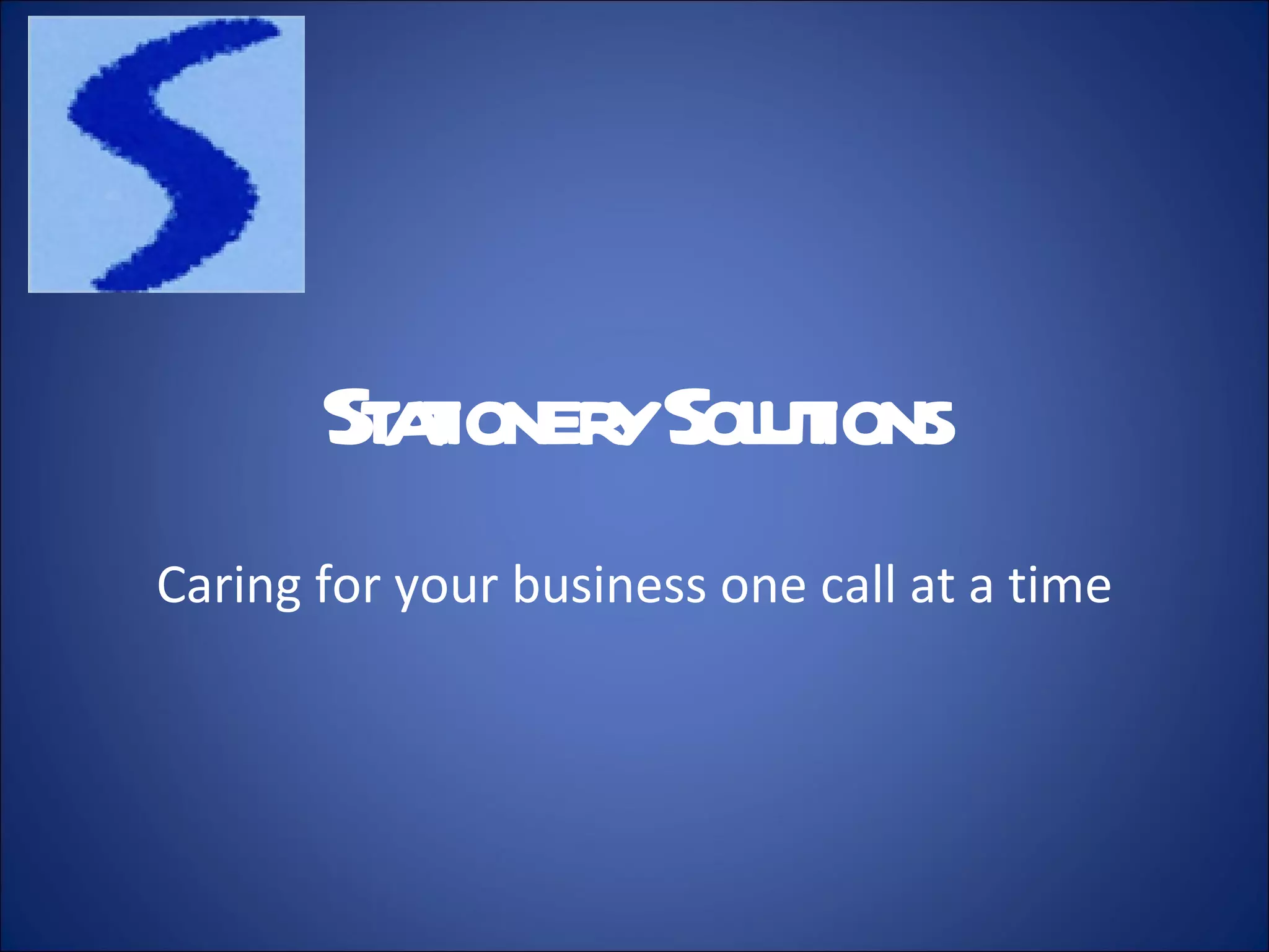 Stationery Solutions is a stationery supplier that prides itself on friendly, personalized service and competitive pricing. The document provides testimonials from several satisfied customers praising Stationery Solutions for their reliable service, on-time deliveries, and helpful staff. It also lists the wide variety of stationery products available from brands like MACO and Spiro.