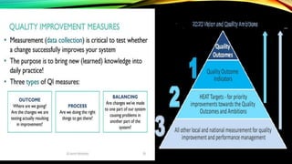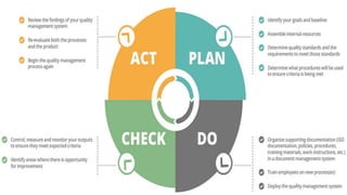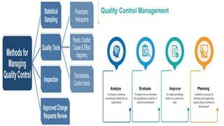 Statistical process control (SPC) uses statistical methods to monitor manufacturing processes and ensure they operate efficiently to produce products that meet specifications. Key SPC tools include run charts, control charts, and design of experiments. Quality measurements are central to quality control and provide feedback on processes. For pharmaceutical manufacturing, in-process checks are important and include checking drug content uniformity, particle size, and filling amounts at different stages of production for various dosage forms like parenterals, solids, and semisolids. Control charts are essential tools to monitor processes and identify factors affecting performance.