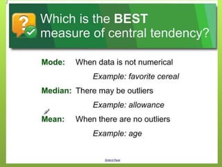 After data is collected, it must be processed which includes verifying, organizing, transforming, and extracting the data for analysis. There are several steps to processing data including categorizing it based on the study objectives, coding it numerically or alphabetically, and tabulating and analyzing it using appropriate statistical tools. Statistics help remove researcher bias by interpreting data statistically rather than subjectively. Descriptive statistics are used to describe basic features of data like counts and percentages while inferential statistics are used to infer properties of a population from a sample.