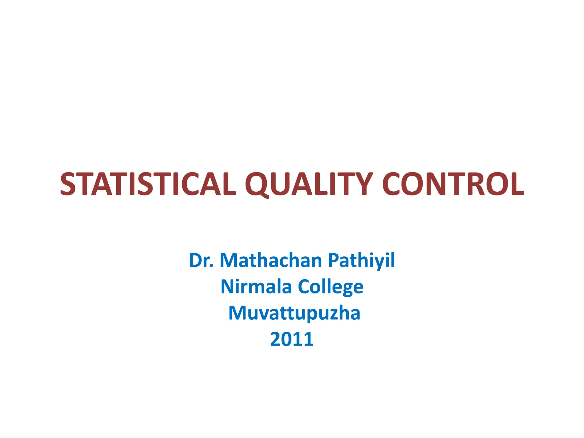 This document provides an overview of statistical quality control. It defines quality as satisfying customer needs and discusses how quality is planned, achieved, controlled, and continuously improved. It describes distinguishing quality of design from quality of conformance. Quality control techniques are used to manage all production steps to achieve desired quality. Control charts in particular help monitor processes for assignable causes of variation and ensure processes are in a state of statistical control. The document outlines principles of statistical process control like variability, measurement, normal distribution, and how assignable causes distort patterns. Histograms provide snapshots of process performance while control charts continuously monitor processes.