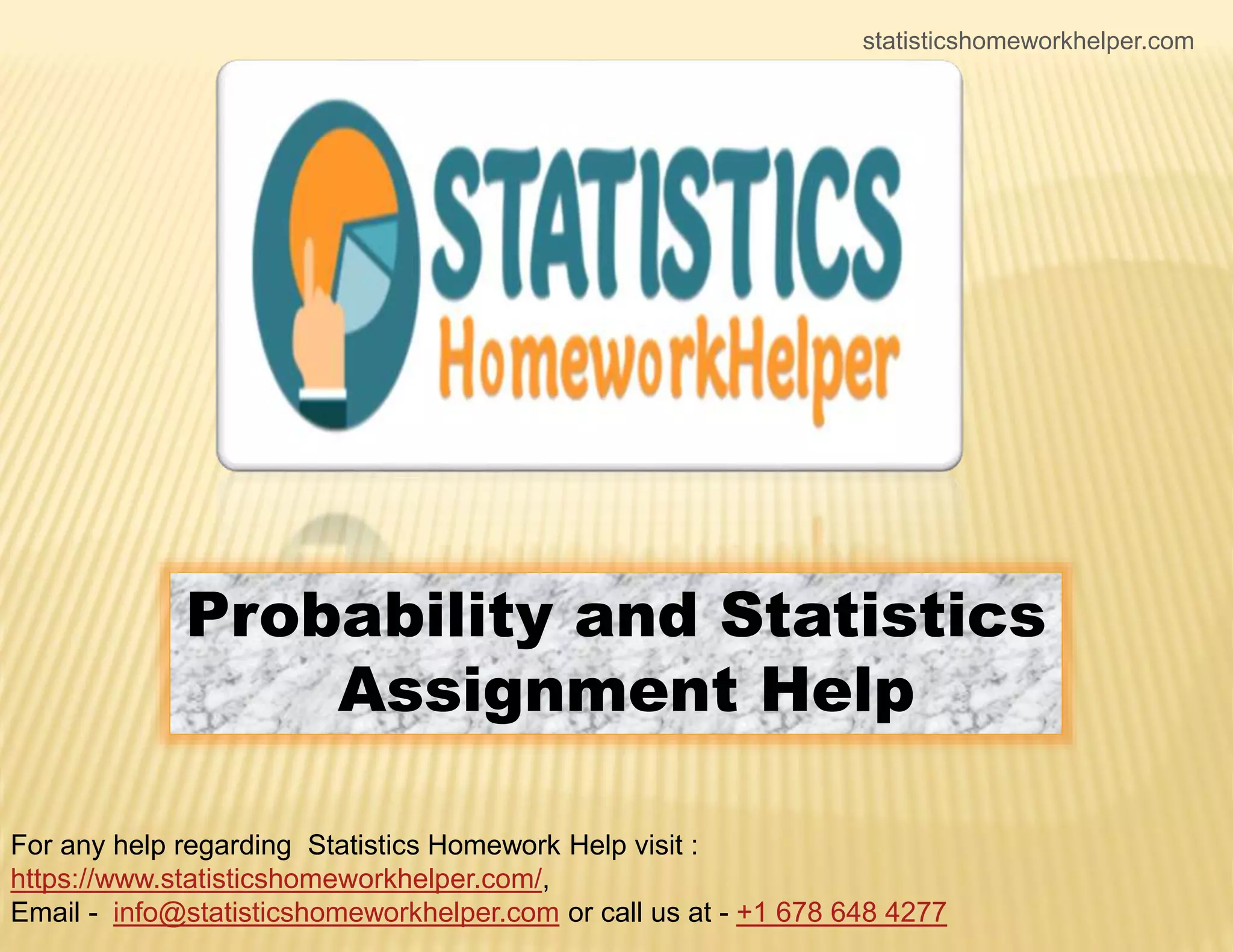 - The document provides information about statisticshomeworkhelper.com, a service that offers probability and statistics assignment help. It lists their website, email, and phone number for contacting them.