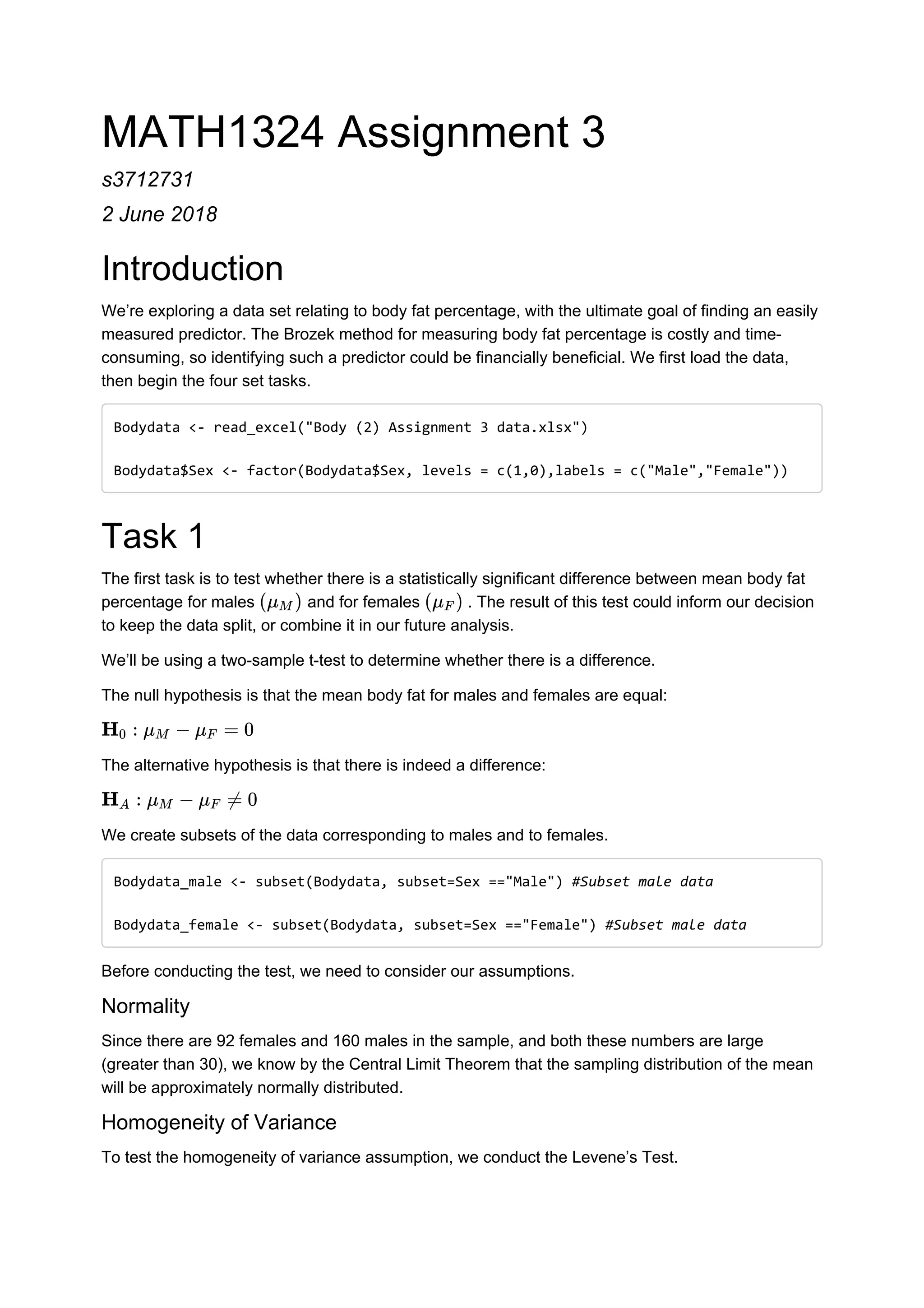 - The document analyzes a dataset relating body fat percentage to various measurements to find a predictor.