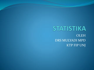 Dokumen tersebut memberikan penjelasan mengenai konsep-konsep dasar statistika seperti pengertian statistika, pengumpulan data, penyajian tabel dan diagram, serta ukuran-ukuran pusat dan penyebaran data seperti rata-rata, median, dan modus.