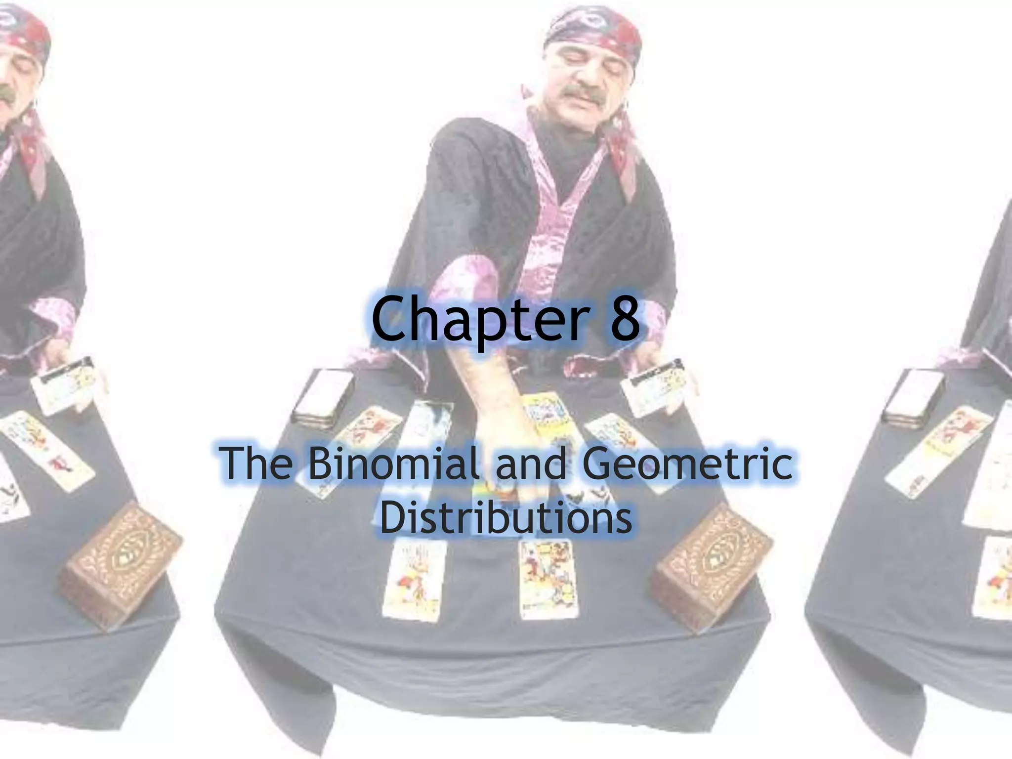 The document summarizes key concepts about the binomial and geometric distributions: