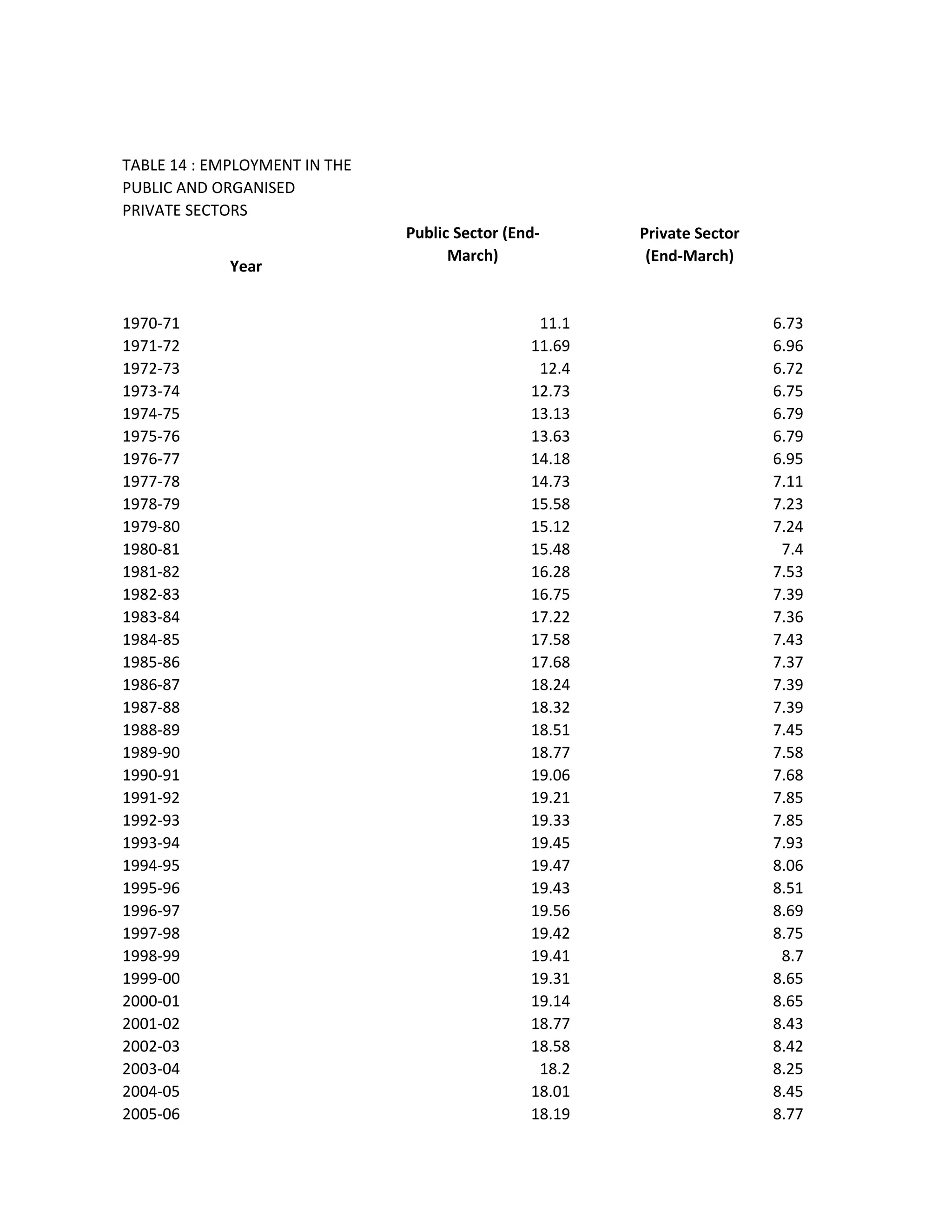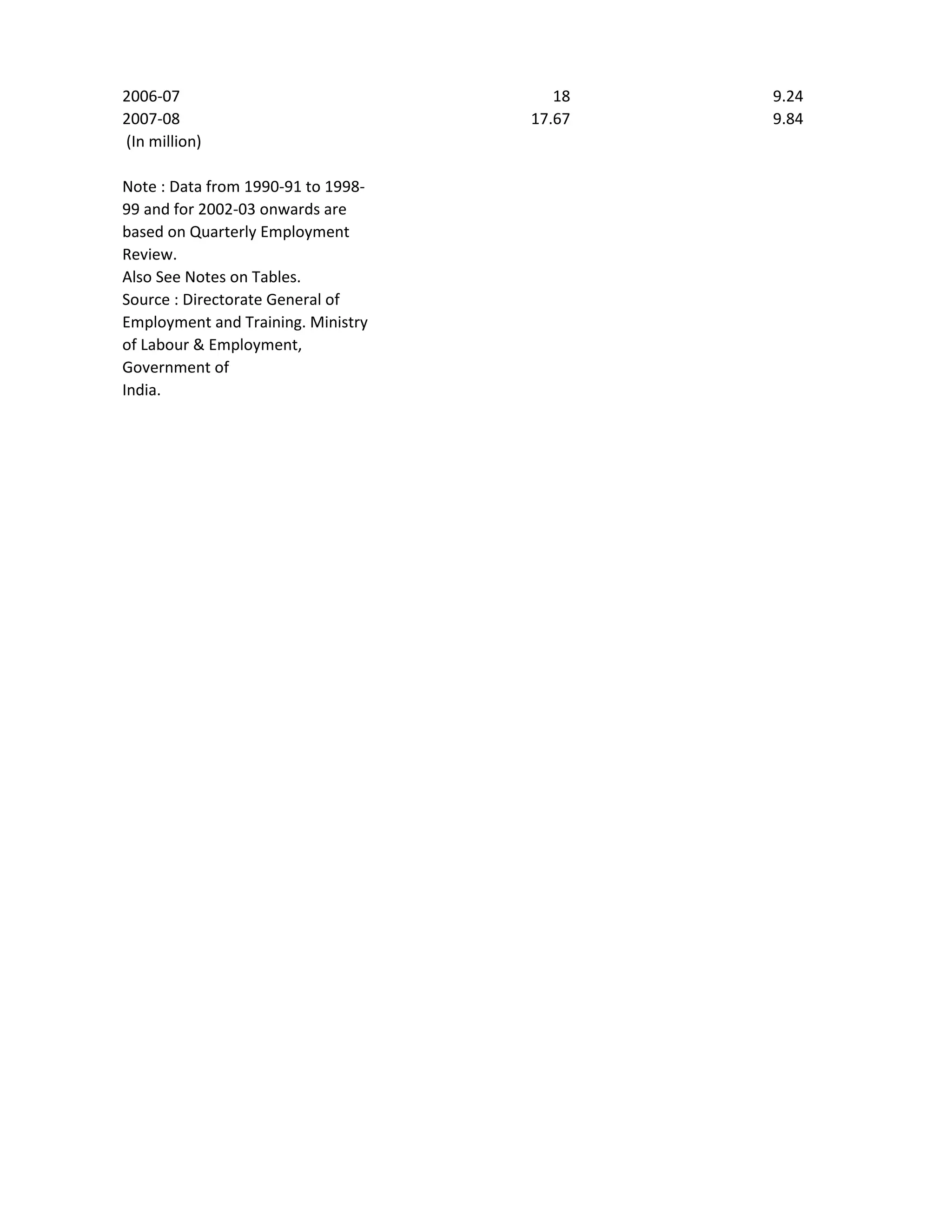 2) Employment in the private sector increased more slowly from 6.73 million in 1970-71 to 9.84 million in 2007-08.