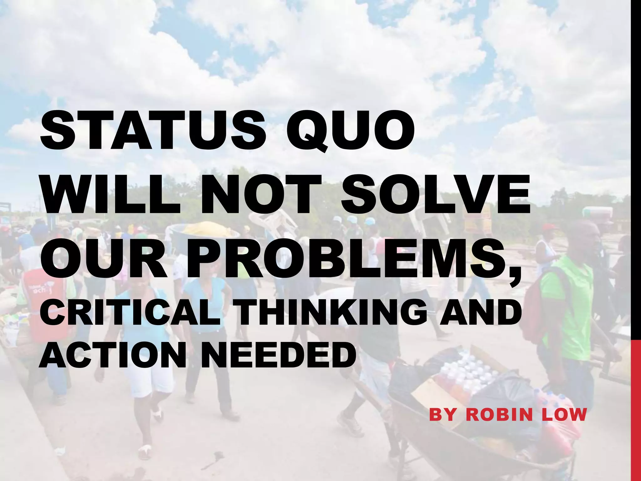 The document discusses the shortcomings of traditional disaster relief methods, emphasizing that well-intentioned help often fails to address the actual needs of affected communities and can inadvertently exacerbate problems. It critiques common practices like donating non-essential items and highlights the importance of engaging local populations, understanding their capacities, and fostering sustainable solutions. The piece also calls for innovative approaches and technology, such as blockchain, to empower communities and address poverty and inequality more effectively.