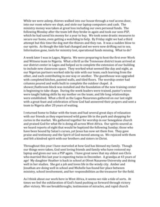 Update newsletter from Tim & Michelle Eby. LInks missionaries for the North Central Ohio District Church of the Nazarene.