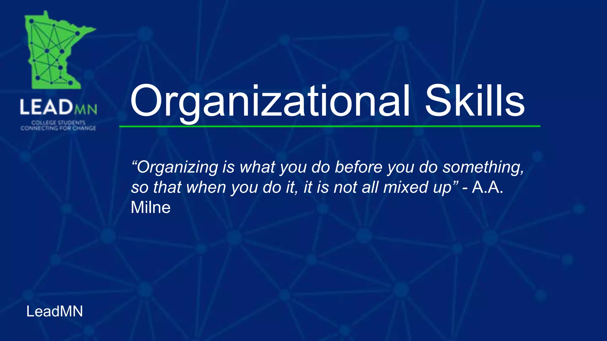 This document discusses organizational skills and provides activities and discussions around organizing, barriers to organization, organizing others, and prioritization techniques. It introduces organizational styles like the hopper, perfectionist plus, and allergic to detail. Barriers to organization that are discussed include a lack of clear scope, prioritization, leadership challenges, resistance to change, and poor communication. Methods for organizing others and prioritizing tasks like making lists, assessing value, honesty, flexibility, and knowing when to stop are also presented.