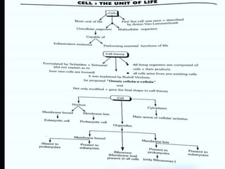The document discusses cells, which are the basic units of life. It covers the milestones in the discovery of cells, defines what a cell is, explains the cell theory, and discusses the number, size, shape, and types of cells. The key points are: