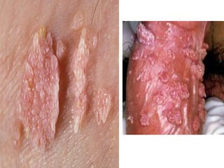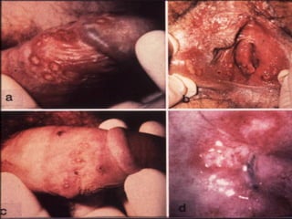 This document provides information about sexually transmitted infections (STIs). It discusses several common STIs including chlamydia, gonorrhea, genital herpes, HIV, and human papillomavirus (HPV). For each STI, it describes symptoms, prevalence rates, treatment recommendations, and risks of complications if left untreated. It emphasizes the importance of abstinence or safer sex practices, as well as getting tested and treated, to prevent the transmission of STIs.