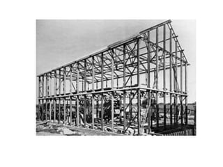 1. This document discusses structural theories and applications of steel as a material. It provides an overview of the physical and mechanical properties of steel, how steel is produced, basic grades of steel, common steel sections, fire protection methods for steel structures, and the form of steel structures.