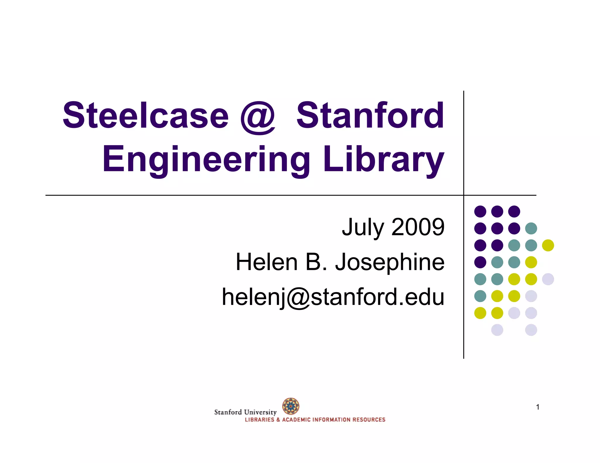 The document details an ethnographic study conducted by Steelcase at Stanford University aimed at understanding student use of library spaces and improving the design of the new Huang Engineering Center. The study involved on-site observations, surveys, and focus group discussions to inform space planning, furniture selection, and the integration of library resources. Conclusions emphasize the need for flexible, functional spaces that accommodate diverse study styles and promote collaboration among students and faculty.