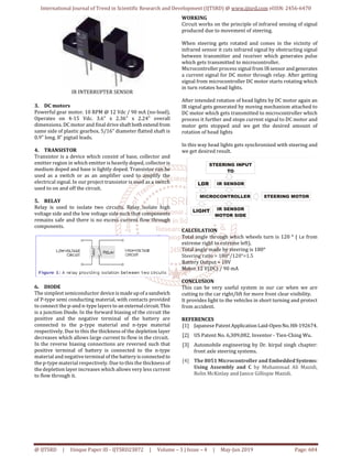 This document discusses a novel steering control adaptive headlight system designed to enhance road safety by synchronizing the headlights with the steering direction using an infrared sensor and microcontroller. The proposed system improves visibility during turns, reducing the likelihood of accidents, especially in low-light conditions. The components involved include microcontrollers, sensors, and motors, which work together to adjust the headlights dynamically as the vehicle maneuvers.