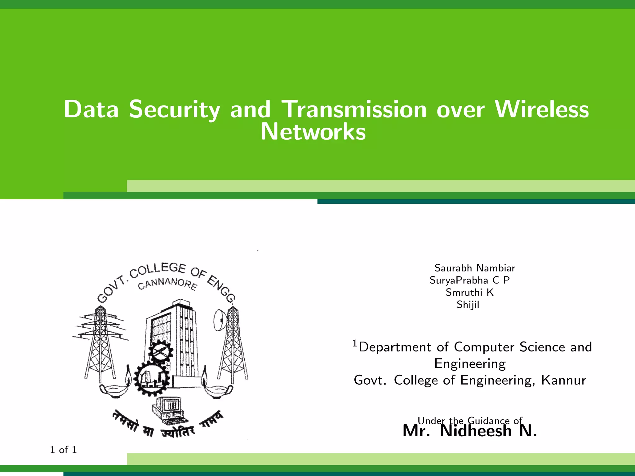 The document outlines a project focused on secure data hiding and transmission over wireless networks using a combination of least significant bit (LSB) steganography, genetic algorithms, and visual cryptography to enhance data security. It details the phases of the proposed system, including encryption, encoding, pixel modification, splitting, overlapping, decoding, and decryption, emphasizing the use of DES encryption and the complexity of message detection. The paper concludes that this enhanced secure algorithm significantly improves the reliability and security of hidden data transmission.