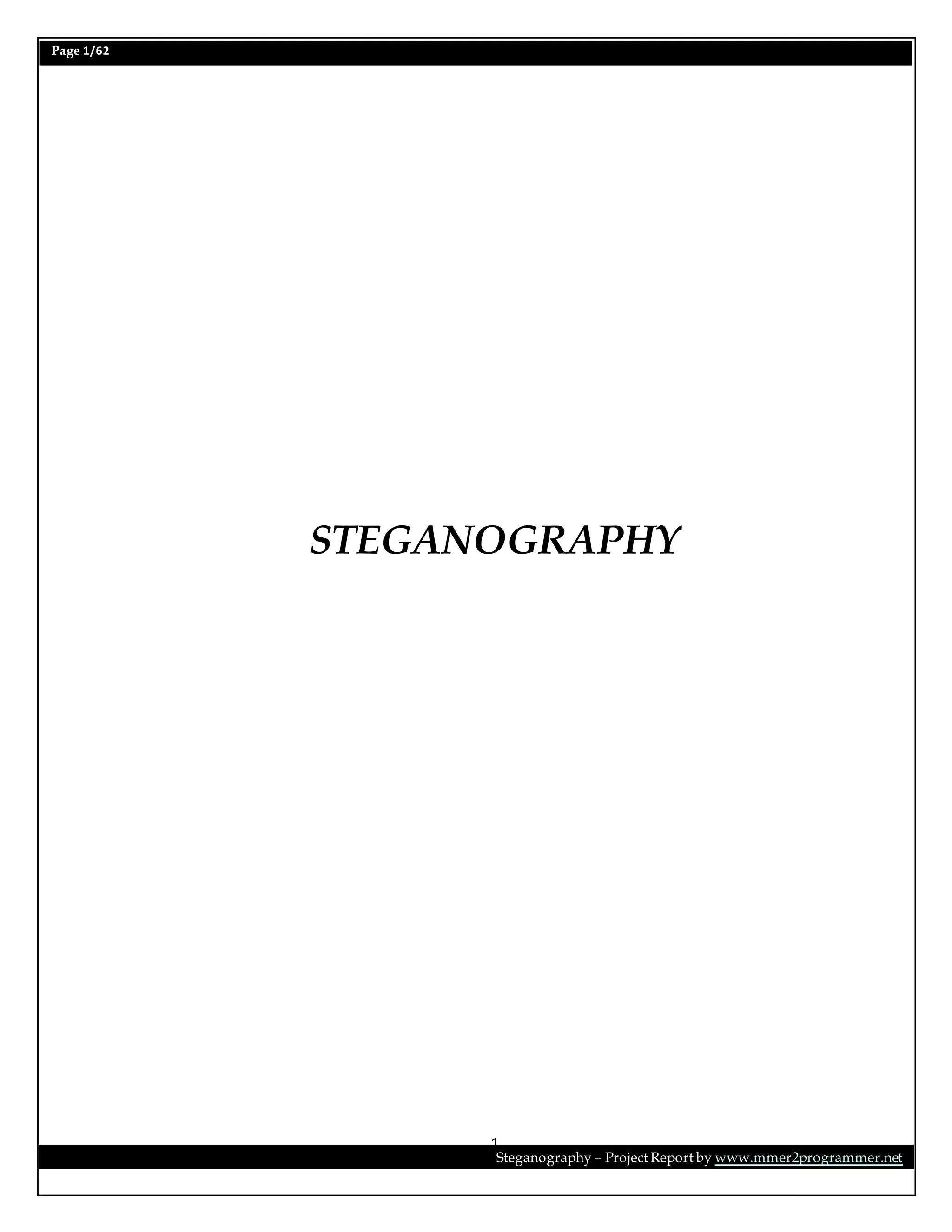 This document is a project report on image steganography submitted by Prabhat Kumar for their master's degree. It includes an abstract, introduction, synopsis, problem statement, objectives, and overview section describing steganography techniques. The report is investigating hiding secret information within digital images and evaluating different steganography methods.
