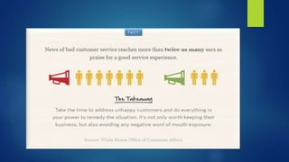 This document discusses the importance of stellar customer service. It provides tips for call center operations to improve customer satisfaction and retention. Some key points include: customers expect friendly, fast, and reliable service across all channels; 91% will not return if expectations are not met; and customer experience impacts whether they feel impressed or cared for versus verbally abusing staff. The document suggests effective call center optimization, cost reduction, quality assessments, and benchmarking. Leadership is important to invest in staff, engage in brand ambassadorship, and lead by positive example. The goal is to deliver stellar customer-centric service and continuously improve the customer interaction process.