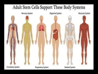 The document discusses stem cells, the basic unit of life that can divide and differentiate into various cell types, and classifies them based on potency and origin. It covers different types of stem cells including totipotent, pluripotent, multipotent, and unipotent, along with their sources such as embryonic, fetal, and adult stem cells. The potential applications of stem cells in medical treatments and therapies, along with ethical considerations, are also highlighted.