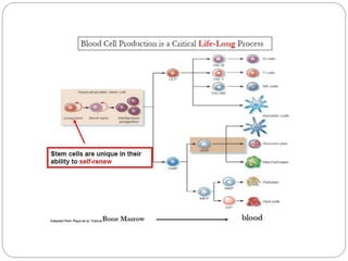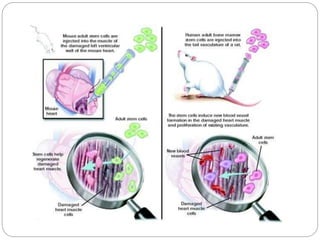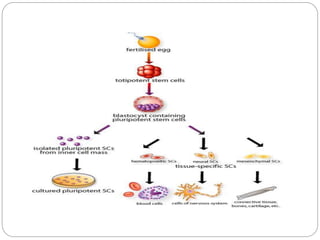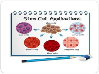 The document provides an overview of stem cells, including their definition, history, characteristics, and classifications such as totipotent, pluripotent, multipotent, and unipotent stem cells. It details the sources of stem cells including embryonic, embryonic germ, and adult stem cells, along with their applications in treating diseases and potential for future medical advancements. Additionally, it mentions important milestones in stem cell research and lists various biotechnology companies involved in the field.