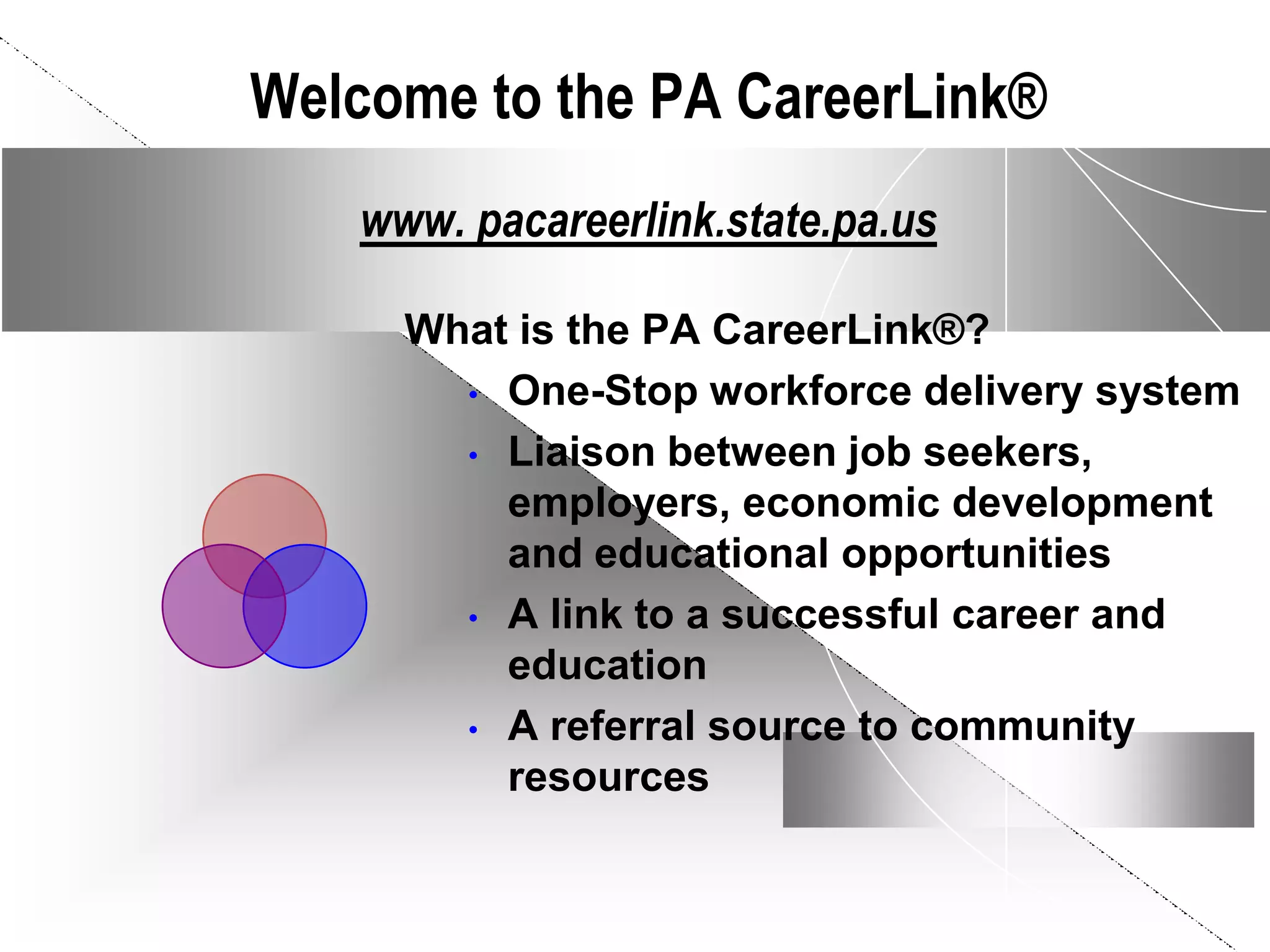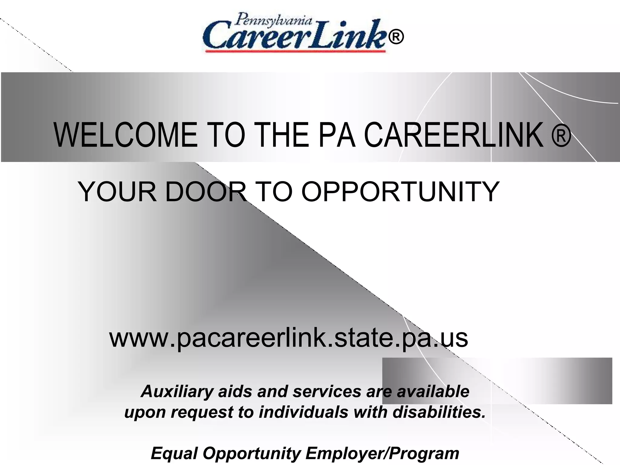 The document introduces the PA CareerLink® as Pennsylvania's one-stop workforce system that provides a range of free services to both job seekers and employers, including skills assessments, career counseling, job training programs, resume assistance, job postings, and recruiting resources. It outlines the core, intensive, and training services available to help job seekers explore careers, develop skills, and find employment while helping employers fill positions and meet staffing needs. The CareerLink works with various state and local economic development, educational, and social services partners to connect users with a wide range of opportunities and resources.