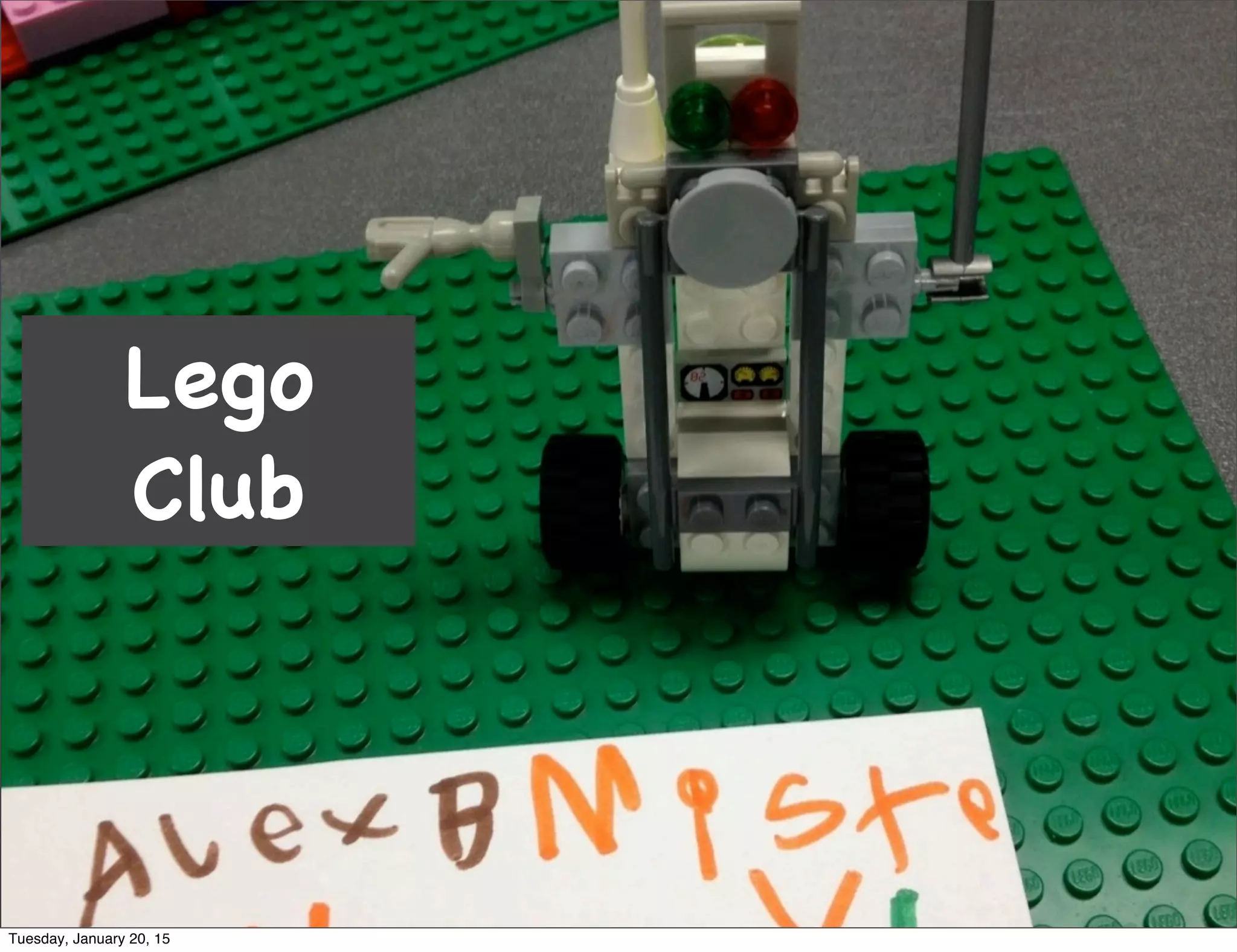 This document contains a schedule for activities at a club on Tuesday, January 20th, 2015. The schedule includes Lego club, creating scratch video games, building bristlebots and spinbots, a workshop on Arduinos in boomboxes, LED activities, soldering, light painting, app art, play dough chemistry, working with Little Bits, using MaKey MaKeys, designing marble runs and card engineering, and making terrariums.