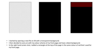 The document provides step-by-step instructions for creating a contents page for a magazine in InDesign. It describes adding various design elements like rectangles, text boxes, images, and headings in a consistent color scheme and font. Sections are organized with white boxes and headings describe the content on each page. Advertisements, special features, and contributor details are also included in the contents layout. The page was created to match the style and branding of the magazine's front cover for a cohesive look.