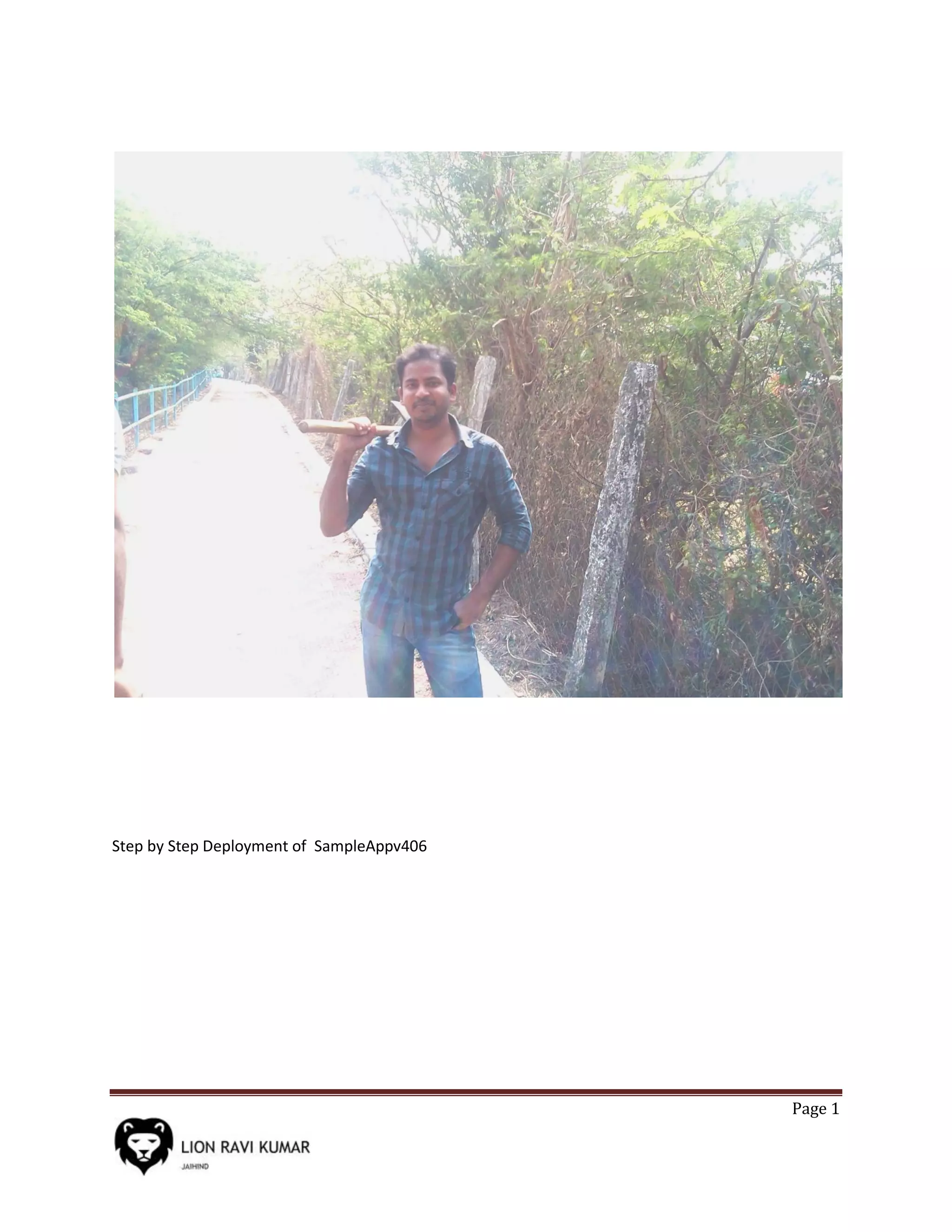 This document provides step-by-step instructions for deploying the SampleAppv406 application. It details starting various components like the database, Weblogic admin server, managed servers, BI and Essbase, Timesten, Endeca, and the Endeca Integrator. The document concludes with instructions for stopping services.