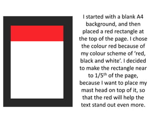 1) A red rectangle was placed at the top to serve as the background for the masthead in keeping with a red, black, and white color scheme.