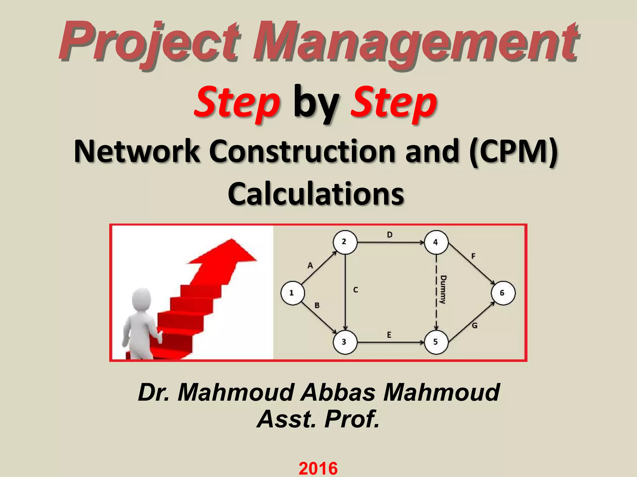 1) Drawing the activity-on-arrow (AOA) network diagram for the example project.